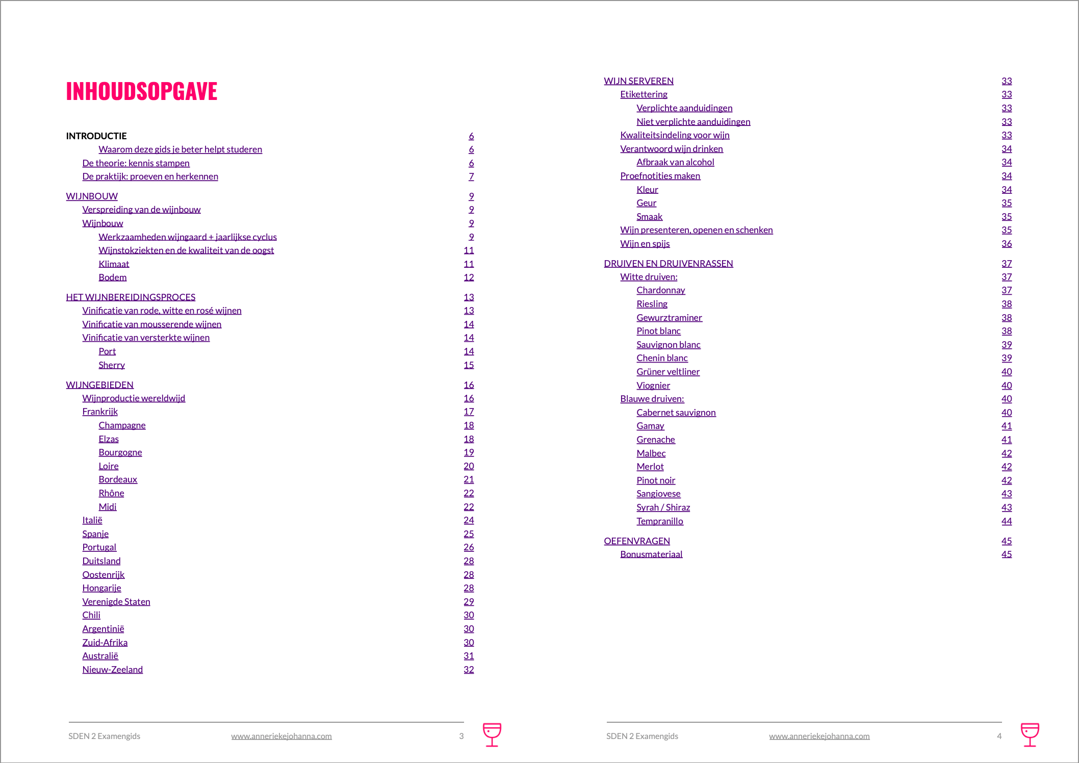 De SDEN 2 Examengids is een gids waarmee je je zo efficiënt mogelijk voorbereid op het SDEN 2 wijnexamen. De gids bevat een overzichtelijke samenvatting met alle informatie (niet meer en niet minder) die je moet kennen voor het SDEN 2 examen, meer dan 130 oefenvragen en interactieve kaarten met de wijngebieden die je moet kennen voor het examen.